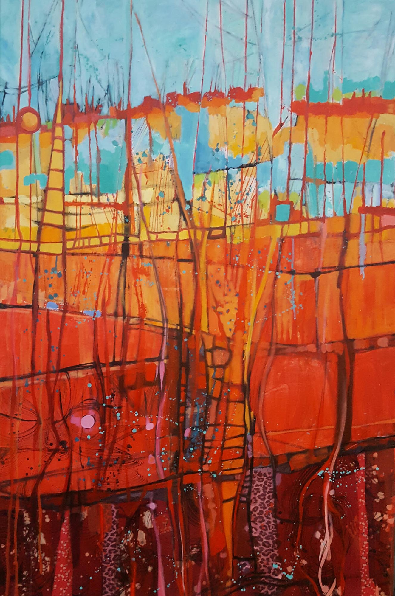 En mi pintura los colores tienen autonomía, pueden habitar una forma o estallar en salpicaduras; rebalsarse de abundancia o diluirse en pocas gotas. Revelan mi libertad y mi sentir, pueden ser tranquilos y difuminados, incómodos; o saturados si quiero expresar insolencia, descaro, alegría o furia.